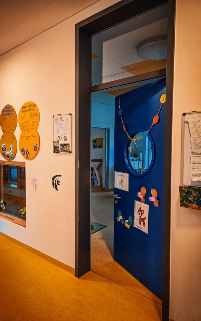 - Krippe: 0 bis 3 Jahre, feste Bezugserzieher*innen, klar strukturierte Räume und Ruhebereiche